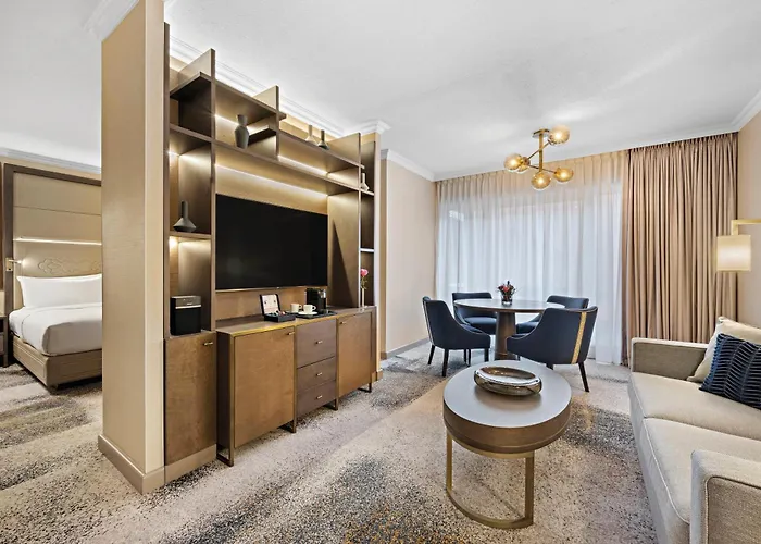 O hotel refinado fornece 400 quartos, incluindo um quarto deluxe e um quarto duplo que oferece cofre pessoal, sofá e secretária. Eles estão equipados com casas de banho privadas.
